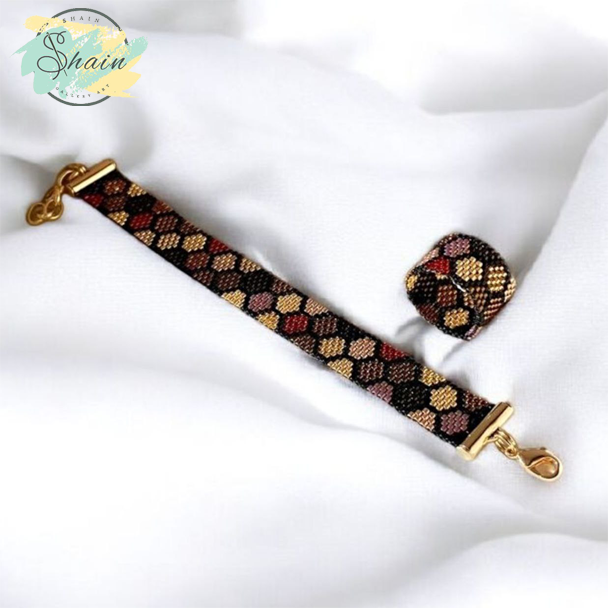 نیمست دستبند و انگشتر میوکی طرح پوست ماری | کد 3059 | برند شاین گالری