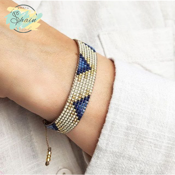 دستبند میوکی طرح مثلث آبی کد 3063 یکی از زیباترین و خاصترین محصولات دستساز شاین گالری است که با استفاده از منجوقهای اصل و باکیفیت میوکی ژاپن ساخته شده است. این دستبند با طرح منحصربهفرد مثلث آبی، جلوهای مدرن، مینیمال و چشمگیر به استایل شما میبخشد و بهدلیل رنگبندی جذاب و بافت دقیق، مناسب انواع سلیقهها و سبکهای پوششی است. استفاده از منجوقهای میوکی ژاپنی باعث شده این دستبند علاوه بر زیبایی، دوام و ماندگاری بسیار بالایی داشته باشد و در برابر تغییر رنگ و ساییدگی مقاوم باشد.