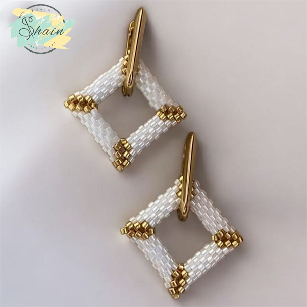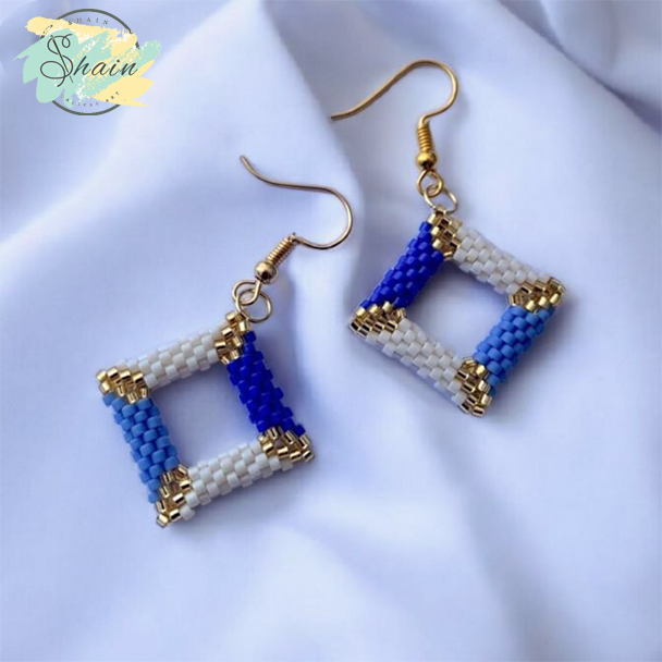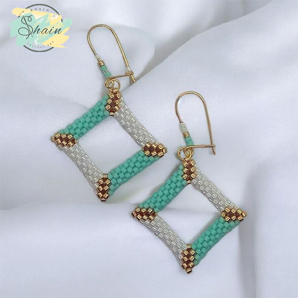 گوشواره میوکی طرح مربع دستساز با اتصالات استیل ضد حساسیت | برند شاین گالری