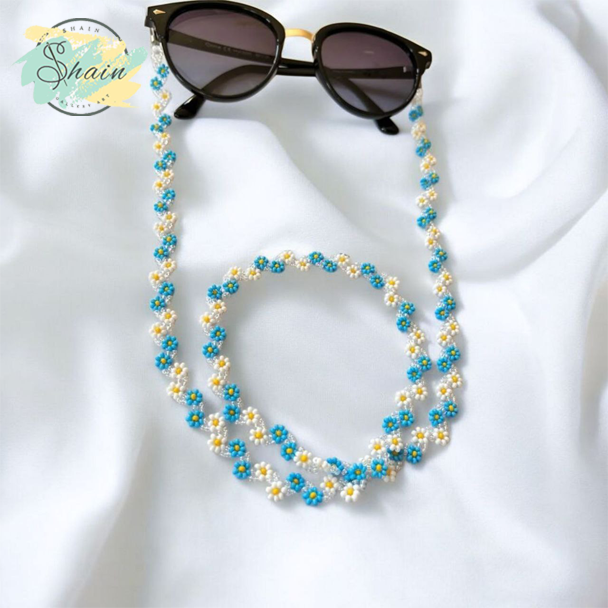 این بند عینک دارای طراحی شکوفهای ظریف است که آن را از سایر بندهای معمولی متمایز میکند. استفاده از رنگهای زیبا و چشمنواز در کنار ترکیب مهرههای میوکی باعث شده تا این بند، انتخابی شیک و منحصربهفرد باشد.