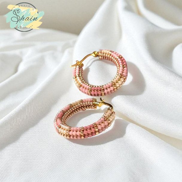 گوشواره حلقهای طرح رزینا کد 3128 شاین گالری | اکسسوری دستساز با منجوق میوکی