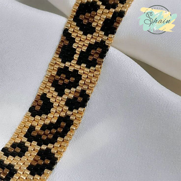 دستبند میوکی مدل پلنگی طلایی کد 3028 از برند شاین گالری (Shaingallery) یکی از خاصترین اکسسوریهای دستساز زنانه است که با الهام از طرح جسورانه پلنگی و درخشش رنگ طلایی طراحی شده است. این دستبند با استفاده از منجوقهای اصل میوکی ژاپن ساخته شده؛ منجوقهایی که به دلیل دقت بالا در برش، یکنواختی سایز و ثبات رنگ، در سطح جهانی شهرت دارند.