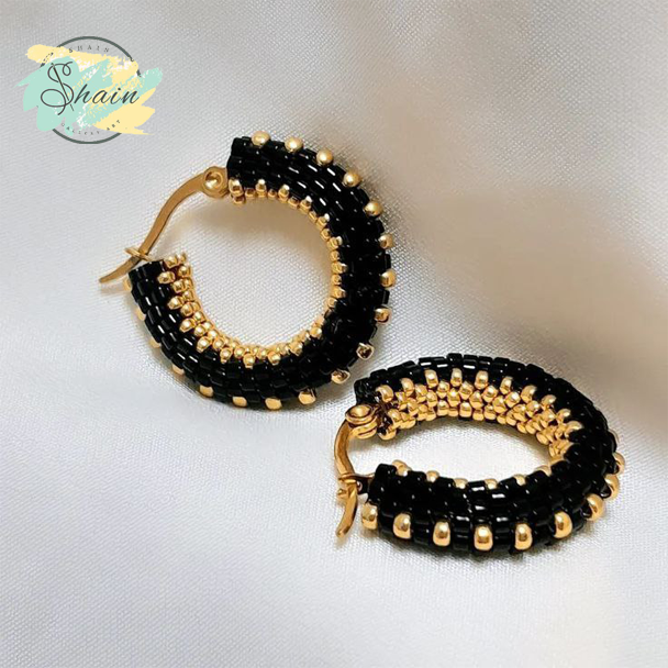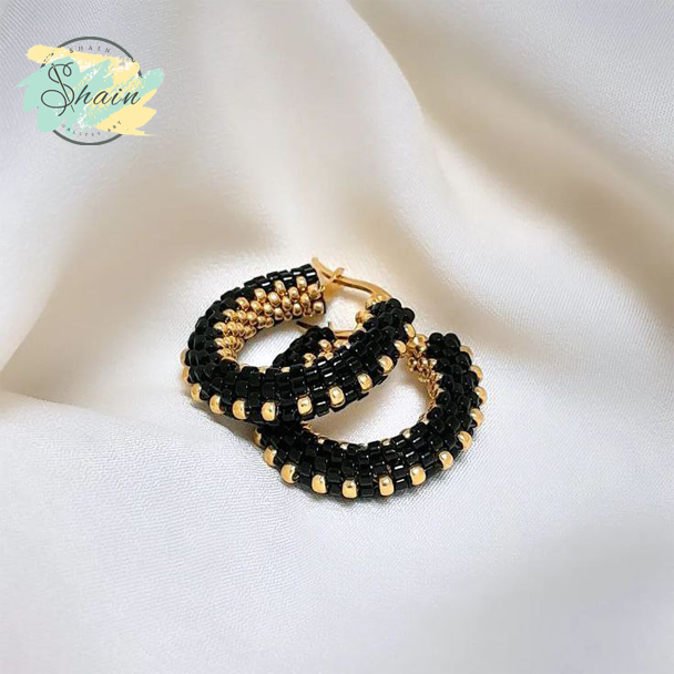 گوشواره میوکی حلقهای طرح مشکی طلایی کد 3126 از برند شاین گالری، یکی از زیباترین و پرطرفدارترین اکسسوریهای دستساز است که با استفاده از منجوقهای اصل میوکی ژاپن و اتصالات باکیفیت استیل ضد حساسیت طراحی و ساخته شده است. ترکیب رنگ مشکی و طلایی در این گوشواره، جلوهای شیک، لوکس و در عین حال مینیمال ایجاد کرده که بهراحتی با استایلهای مختلف هماهنگ میشود.