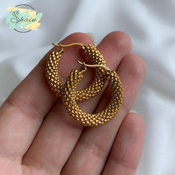 گوشواره میوکی حلقهای طرح زرگون کد 3029 | اکسسوری دستساز برند شاین گالری